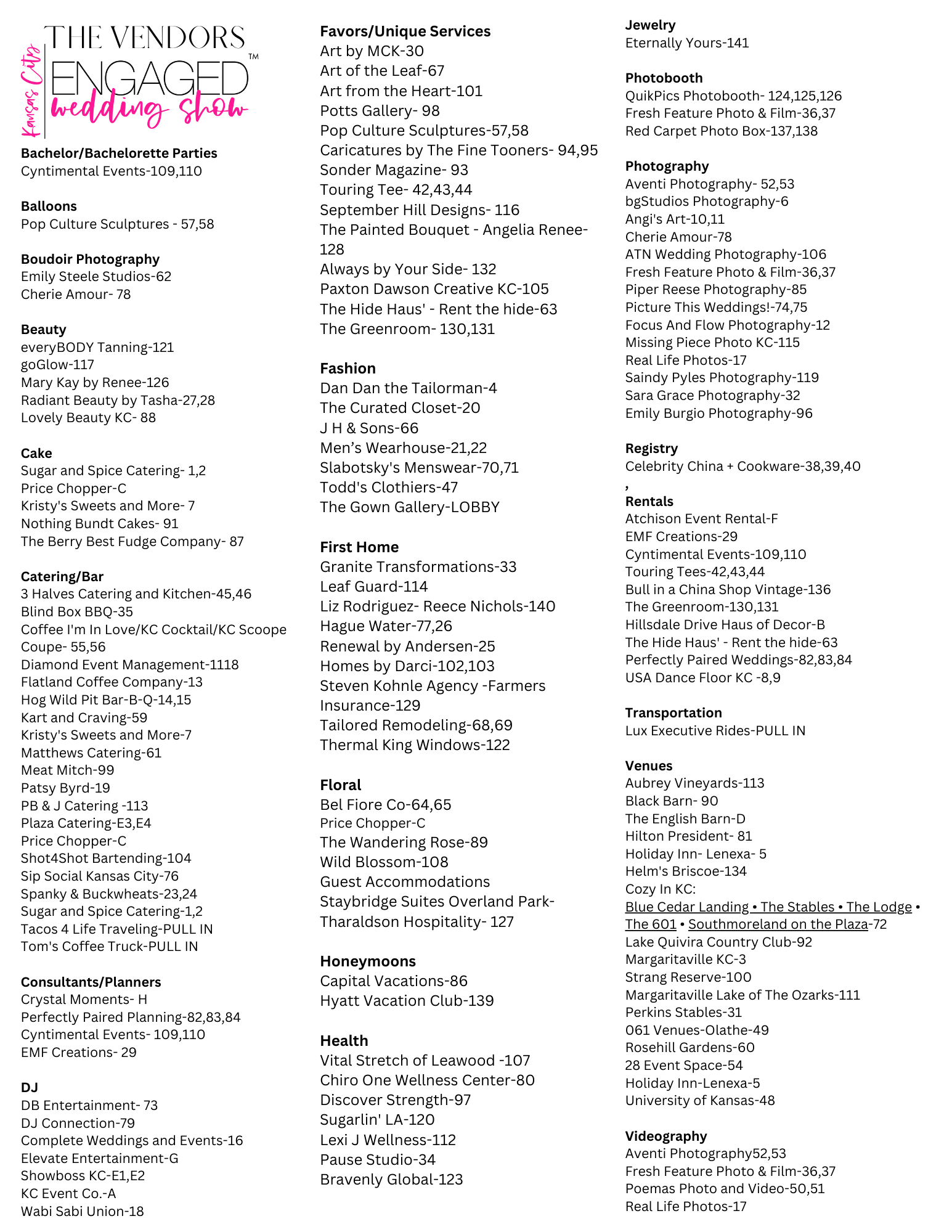 To enter to win prizes, visit the booths listed below and scan the QR code & enter your information into the form. Winners will be announced at the Kansas City Engaged - Sunday, January 4, 2026.